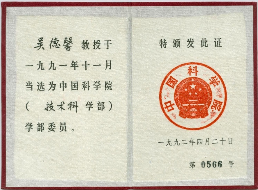 11月,吳德馨當選為中國科學院院士(學部委員)。