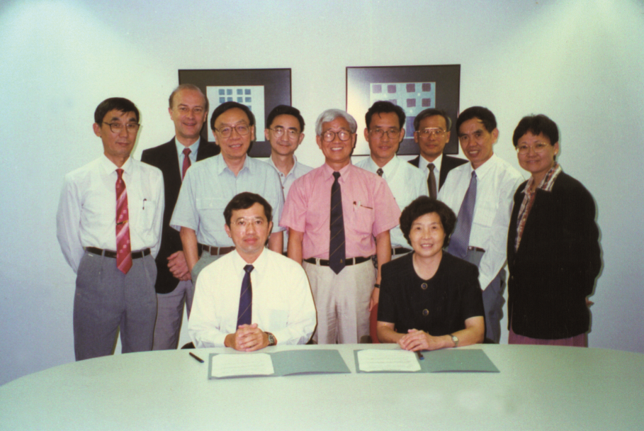 吳德馨院士與香港科技大學理學院院長高秉強(前排左)簽署協議,成立微電子聯合實驗室