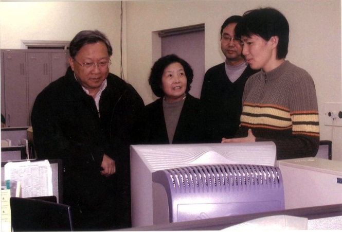 4月12日,中科院院長、黨組書記路甬祥視察微電子中心。